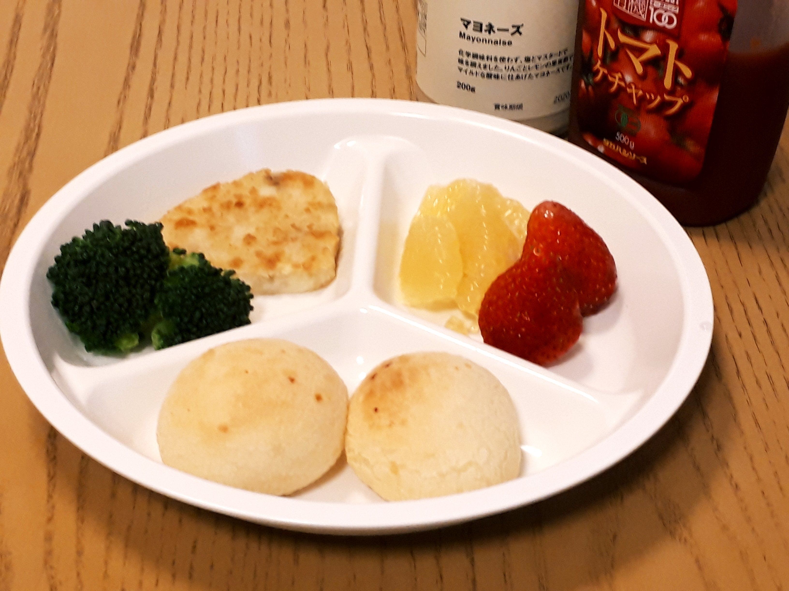 ポン・デ・ケージョとハッシュブラウンを組み合わせれば、1プレート100円以下のモーニングも楽しめます。オーブンでポン・デ・ケージョを焼いている間に、ハッシュブラウンをフライパンで焼いて、野菜やフルーツも準備すれば30分程度で1プレートができます。ポン・デ・ケージョにチーズが入っているのでたんぱく質も取れてはいますが、成長期の子どもには、ハッシュブラウンを焼くときに、いっしょにウインナーかベーコンを焼いて添えるとよいと思います。