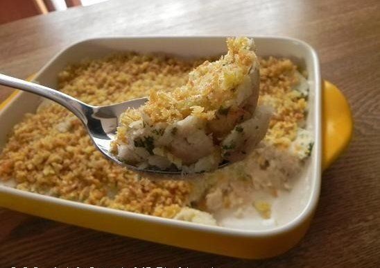 つぶしたじゃが芋と混ぜ合わせて塩こしょうで味つけし、トースターで焼き色をつけたパン粉を乗せるとスコップコロッケに。食べるときにソースをかけるので、味つけは薄めでOK。揚げないのでパパッとつくれます。