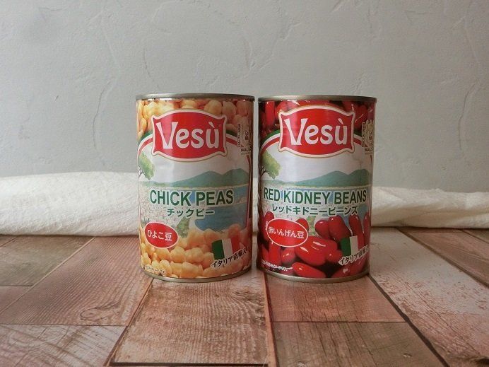 水切りするだけですぐに使えるビーンズ缶詰はとても便利。食感や彩りを考えて使い分けていますが、どちらも1缶使うとボリュームたっぷり。栄養もバッチリでカサ増しにもなるのでお気に入りです。