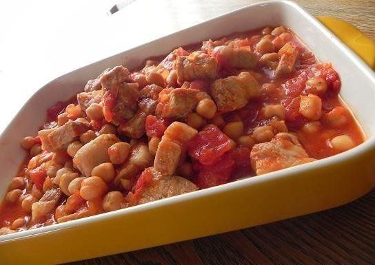 豚肉とひよこ豆のトマト煮はわが家の人気おかず。このままメインのおかずとしてもおいしいですが、パスタと和えるのもオススメ。