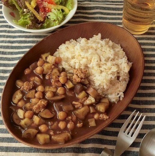 豆たっぷりのカレーもお気に入りです。少しのお肉に豆と野菜をたっぷり入れたカレーは食べ応えバッチリ。