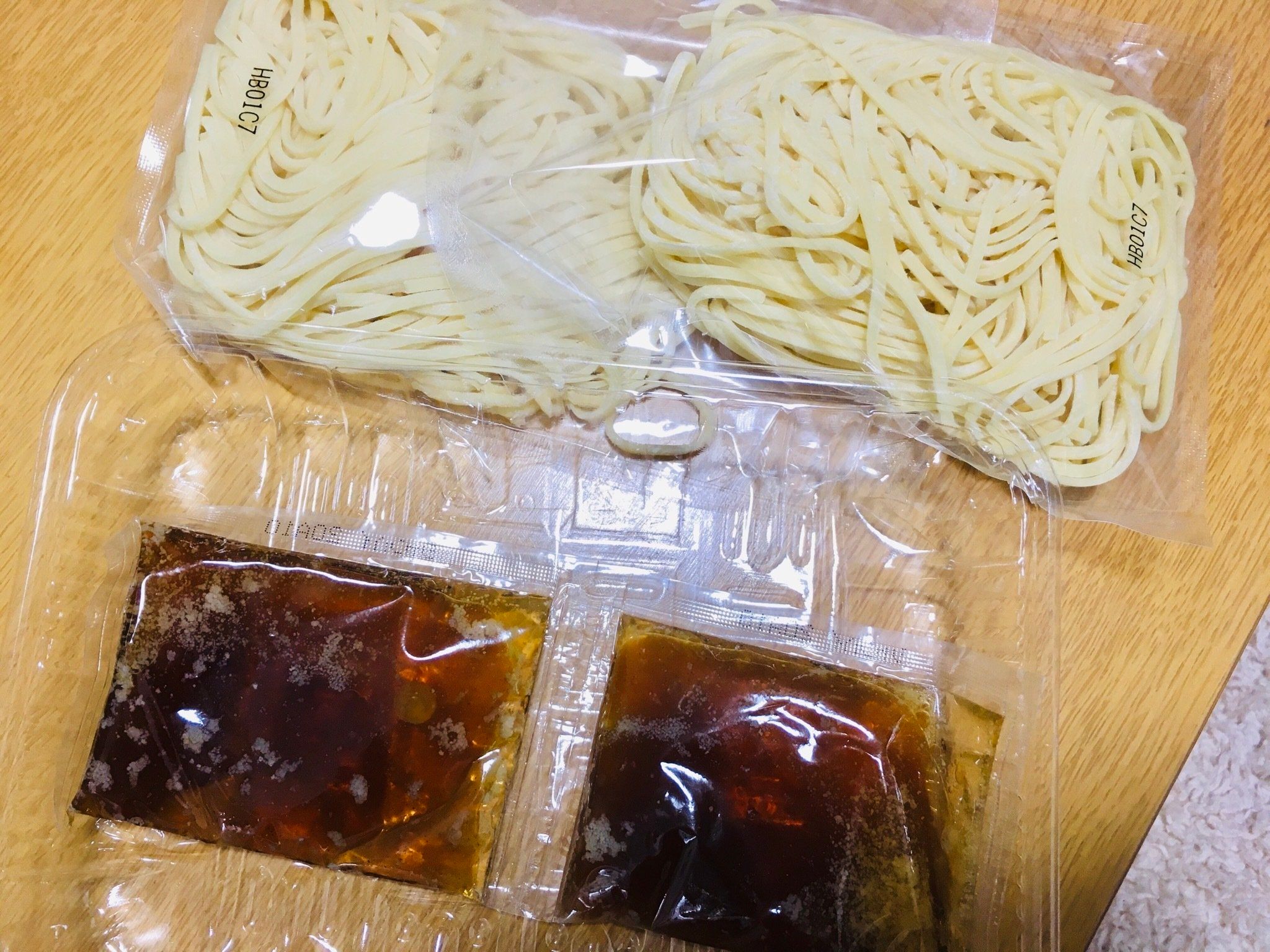 袋を開けると麺2玉とたれが入っています。袋の裏につくり方が書いてあるので、「必ず」読んでください。普通の焼きそばとは少しつくり方が違います。