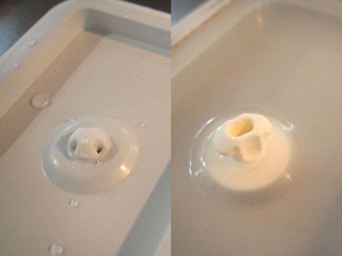 バルブつき容器の商品は同じ無印良品で結構たくさん所持しているのですが、そんなに自信満々に液体漏れの心配なしって言ってよいの…?と正直思っておりましたが、前のものとそもそもバルブの構造が違っていました。左が今回の商品、右が数年前に買ったバルブつきの商品。