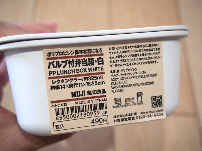 店頭で確認したところ、低学年の子どものお弁当箱にぴったりそうなサイズが「レクタングラー/約325ml」というものでした。色展開は白と黒の2種類。レンチンがそのままできるというところも魅力(なお、レンジでチンする際にはバルブを上げておくことが必須です)。
