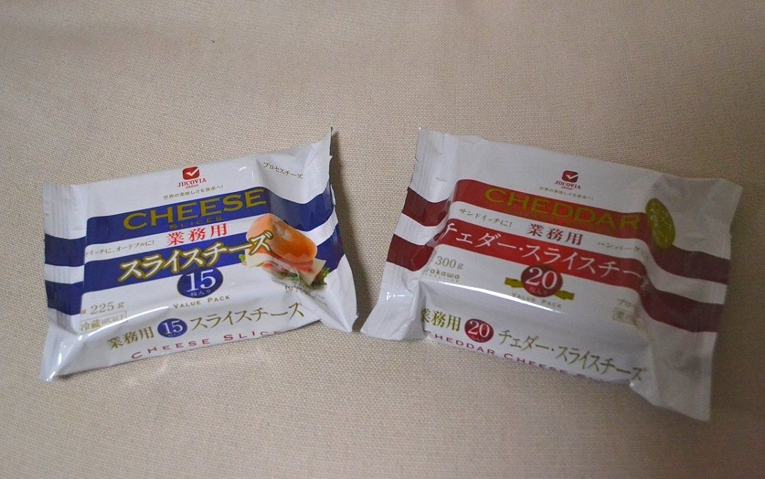 「業務スーパー」に初めて行ったとき、スライスチーズが安すぎてビックリしました!私は、「スライスチーズ」と「チェダー・スライスチーズ」をリピ買いしています。