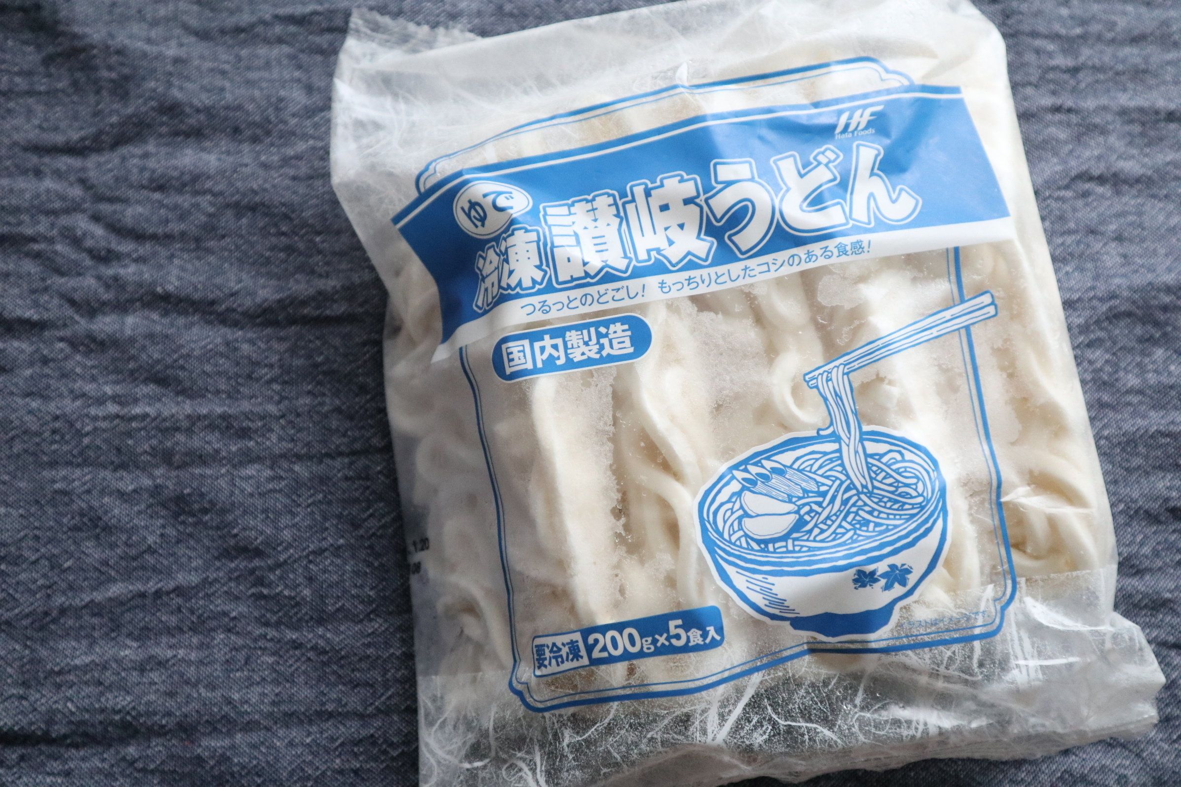 冷凍「讃岐うどん」。1食あたり200gなので、通常の1食分より多いんです。わが家のように食べ盛りは、一般的な1食では全然足りないので、こちらを買っています。