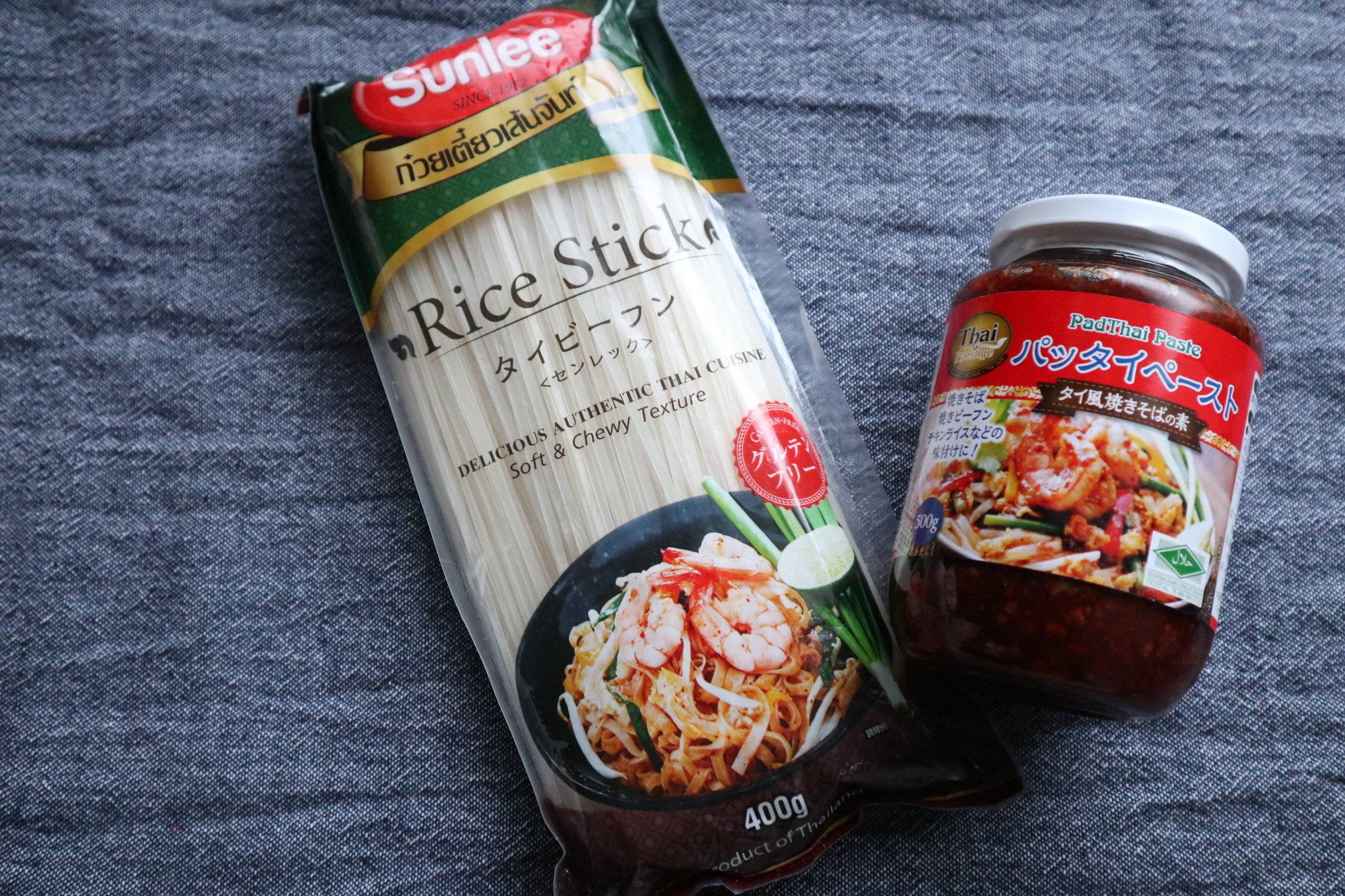 タイビーフンとパッタイペースト。タイビーフンはグルテンフリー、炒めたりフォーにしたり幅広く食べられます。
