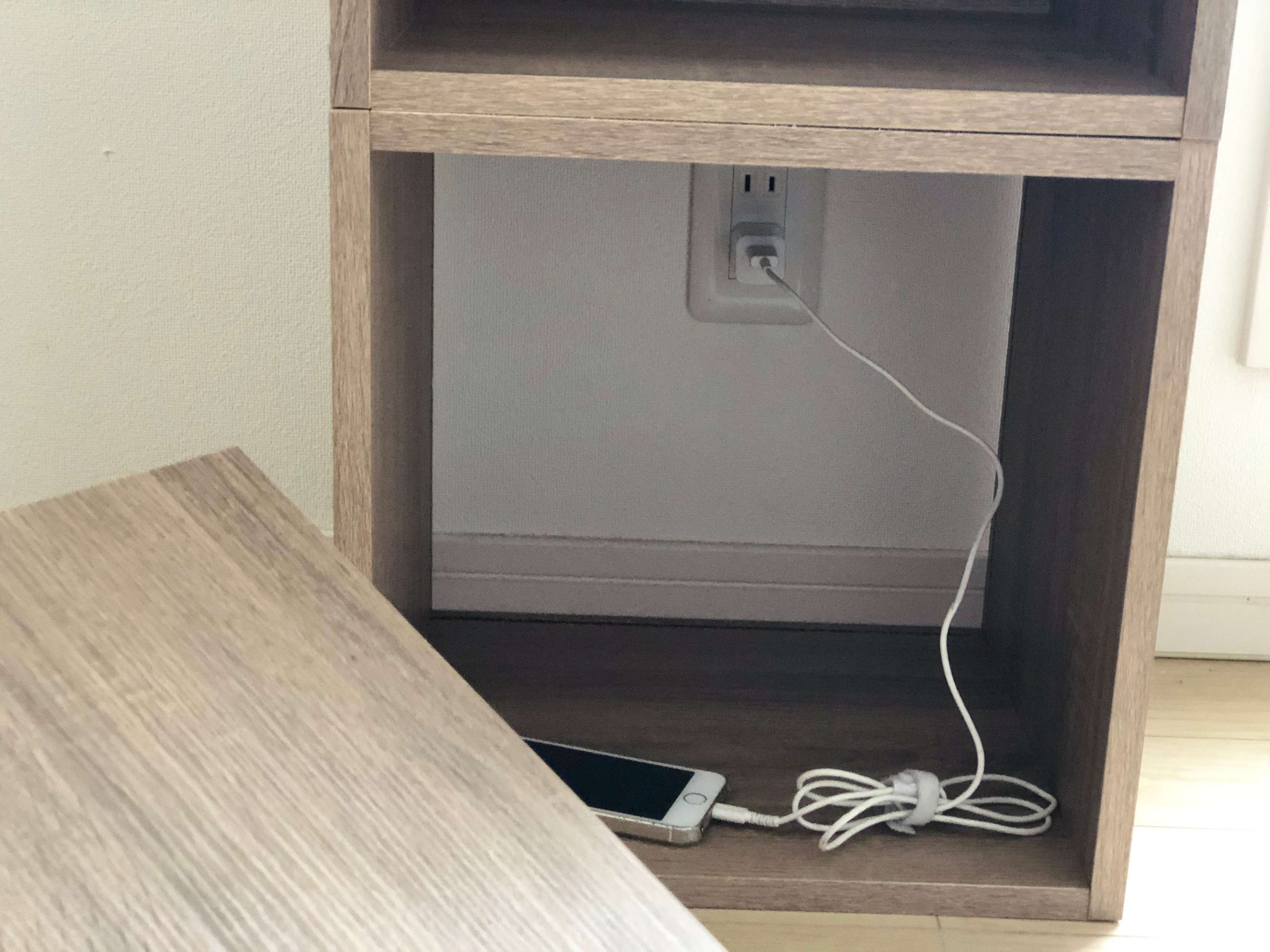 背板を抜いて組み立てればコンセント前に置くことも可能!