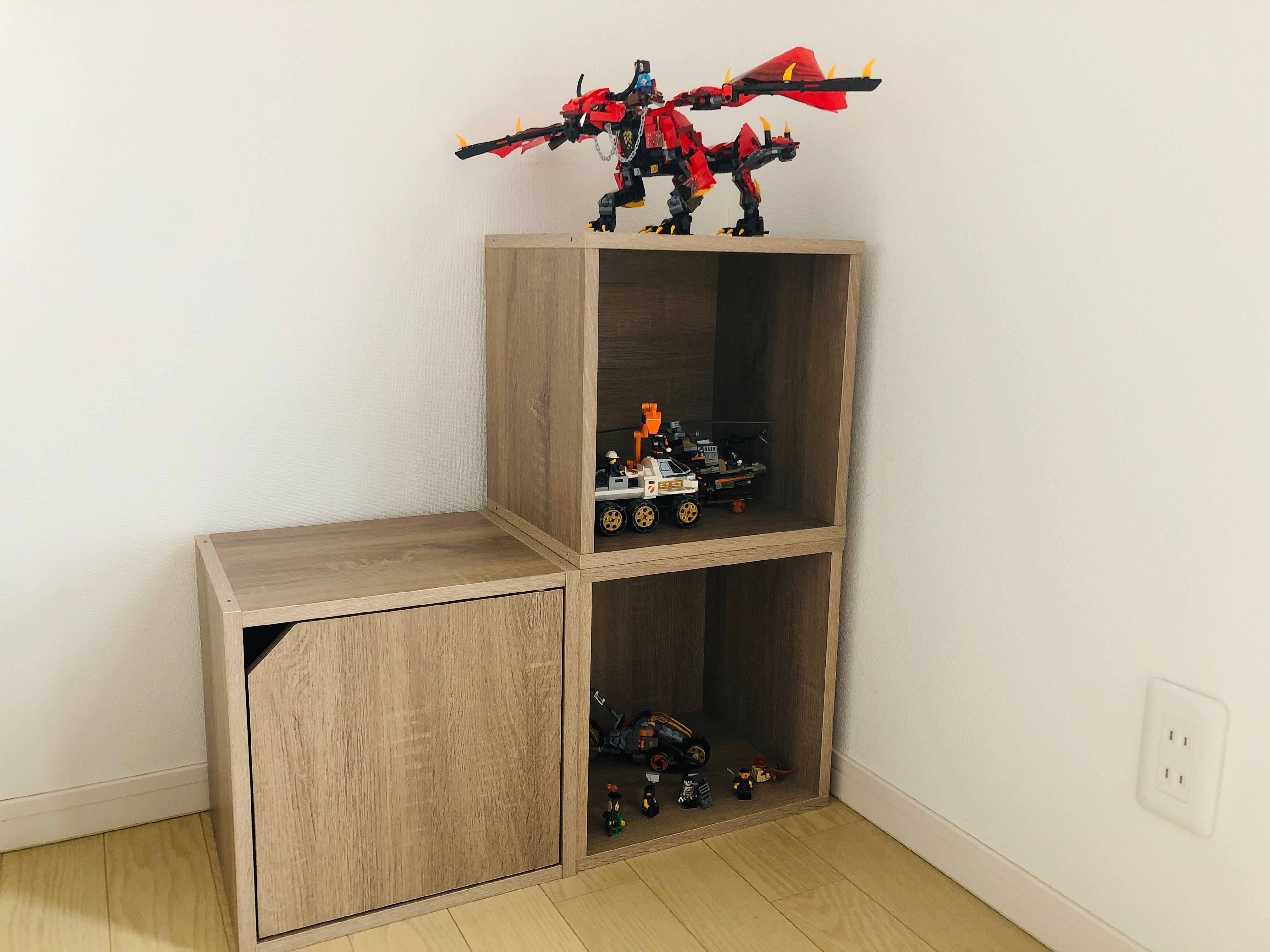 3つを階段状に組み合わせれば、飾り棚のように使うことも。子どもが組み立てたおもちゃなどを、しばらく飾るのにもピッタリ!この枠の中だけ!と飾るスペースを限定することで