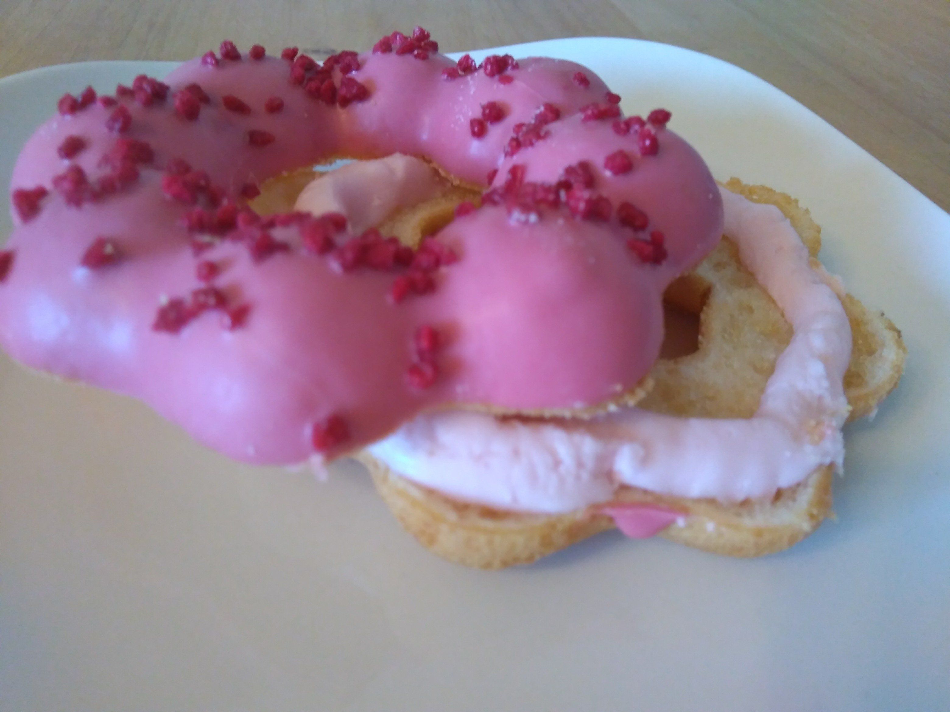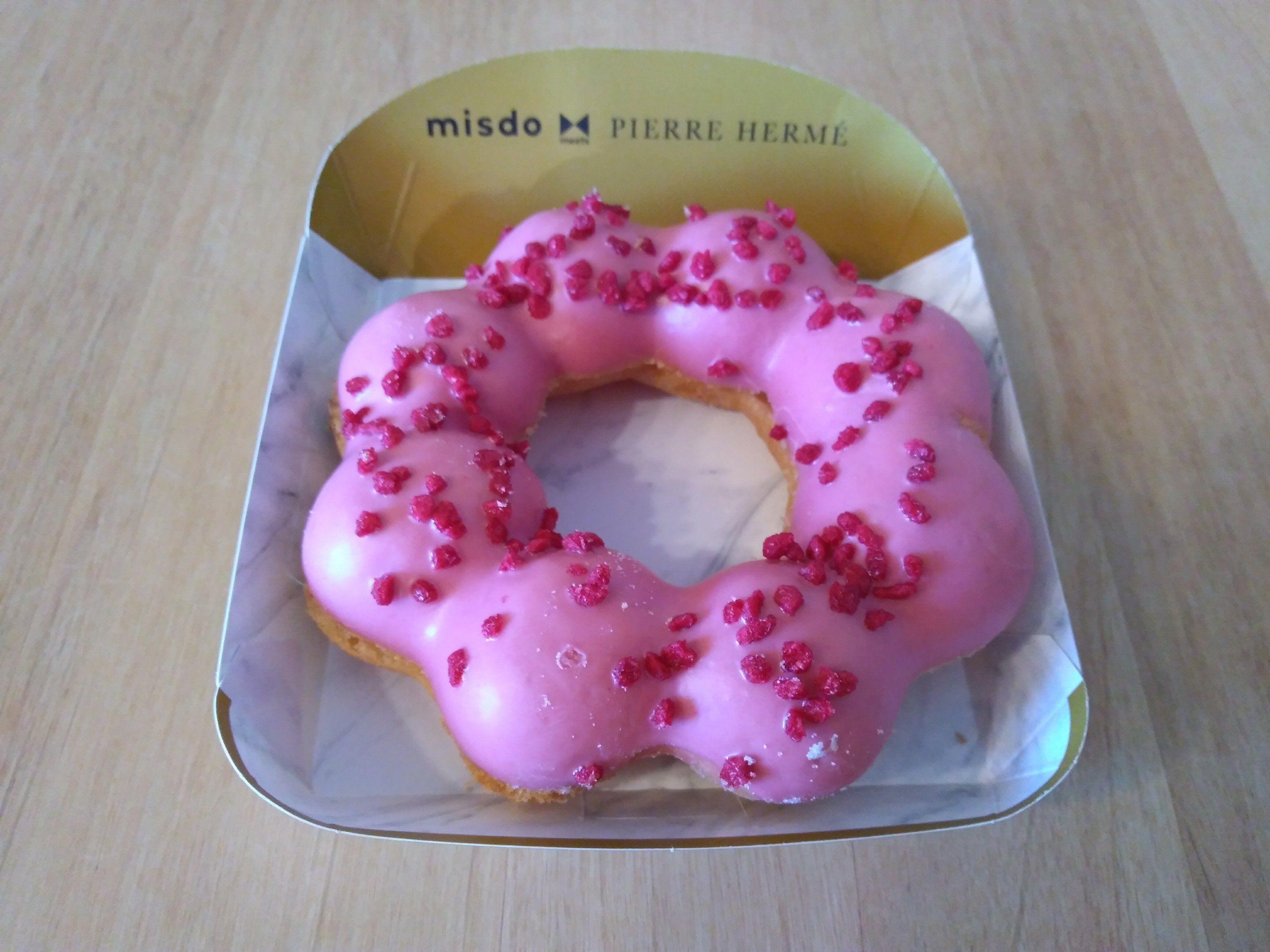 ピエール・エルメの代名詞的スイーツ「イスパハン」を、ポン・デ・リングで表現した一品。