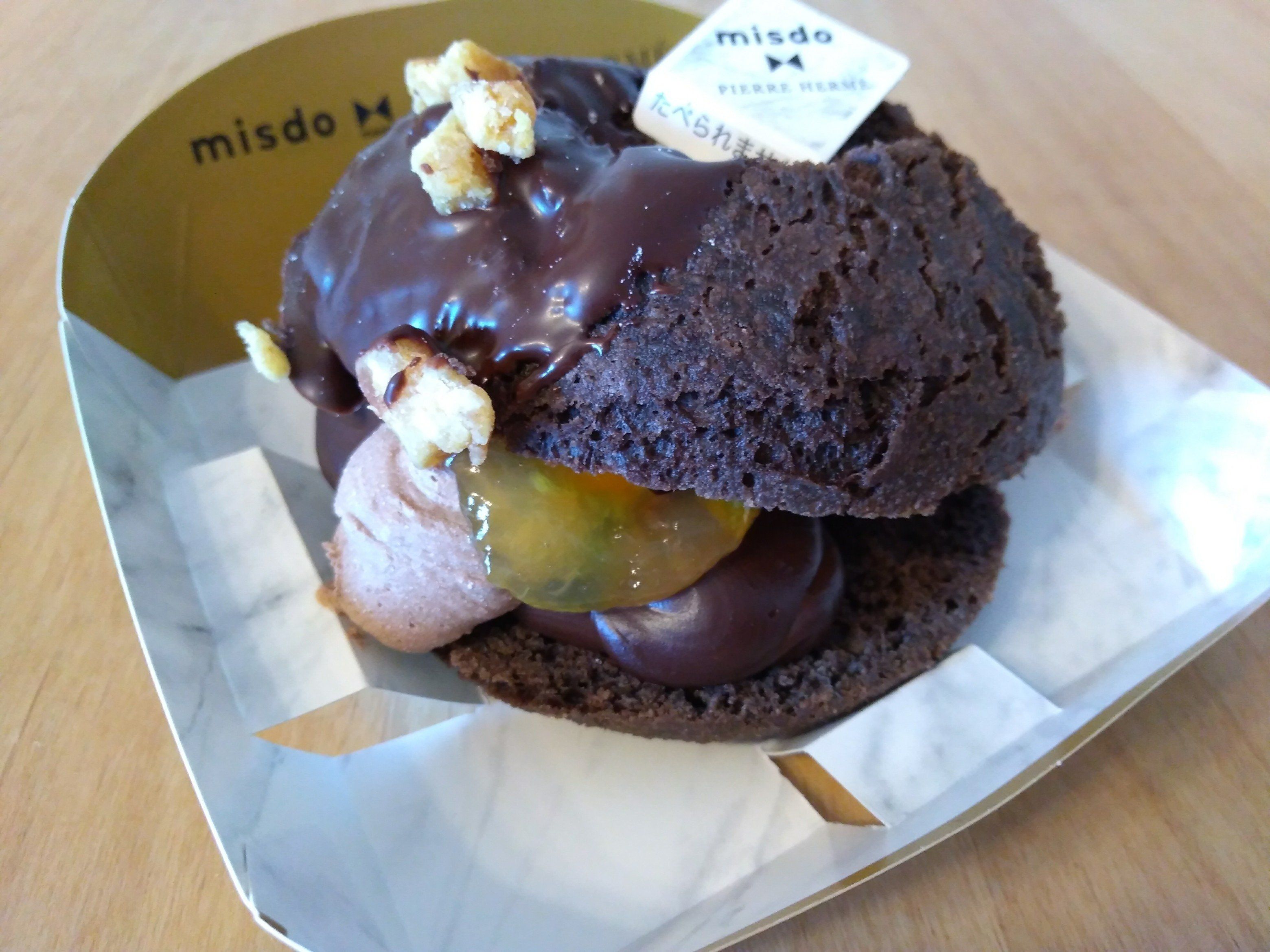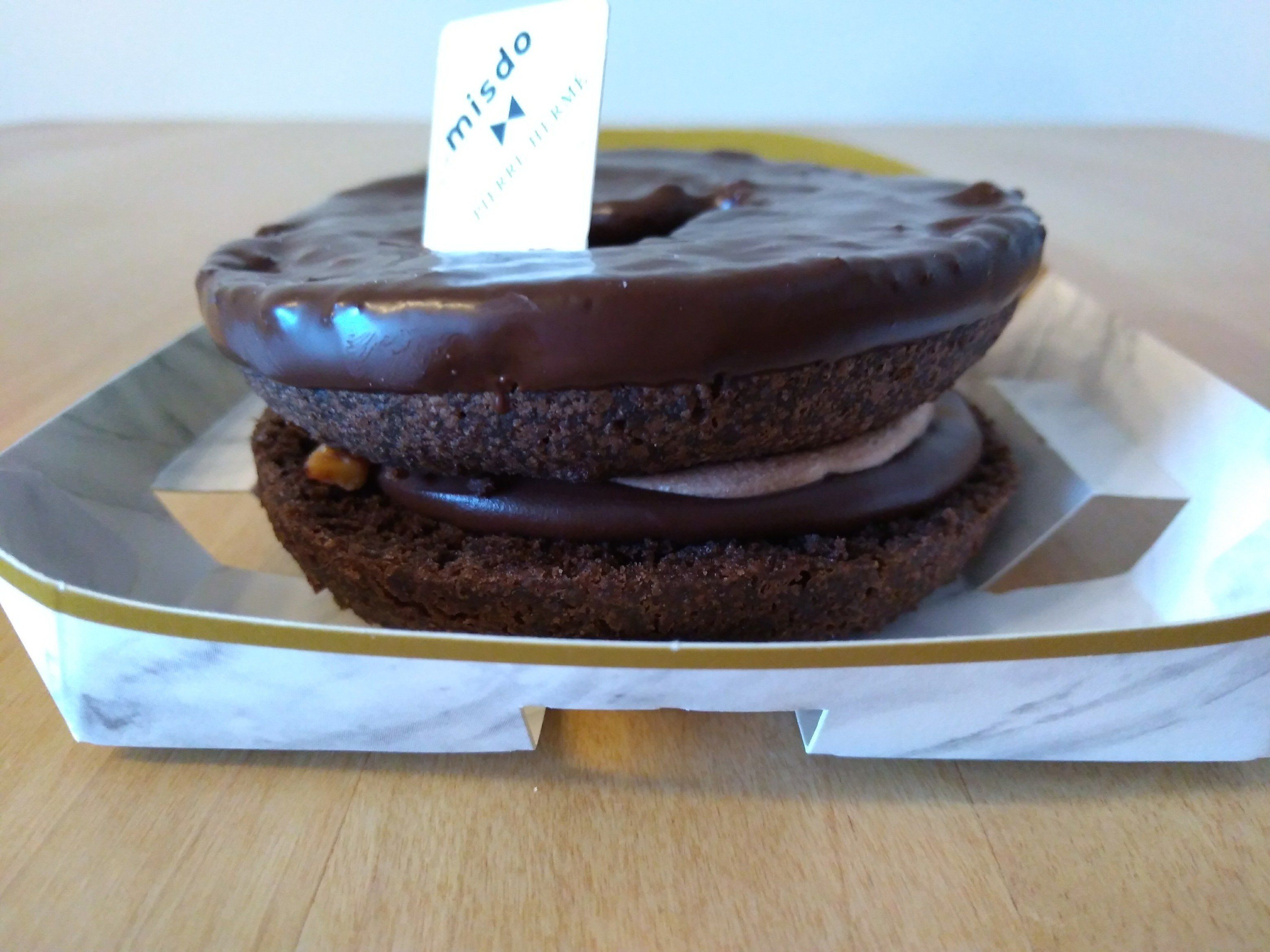 同じくフィナンシェをイメージしたショコラドーナツに、ピエール・エルメのショコラフレーバー「モガドール」を表現した一品。