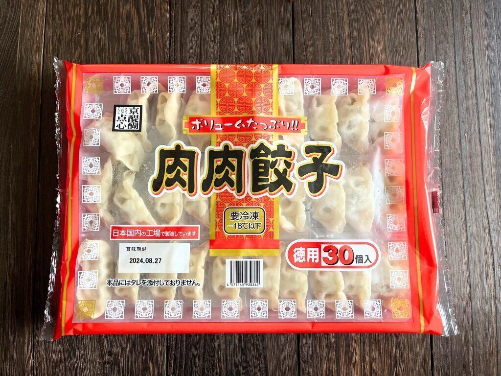 最後にご紹介するのは、「肉肉餃子」です。何度もリピートしているお気に入りの商品で、大容量で260円という高コスパが魅力。昼食や夕食のメインになるので、いつもストックしています。