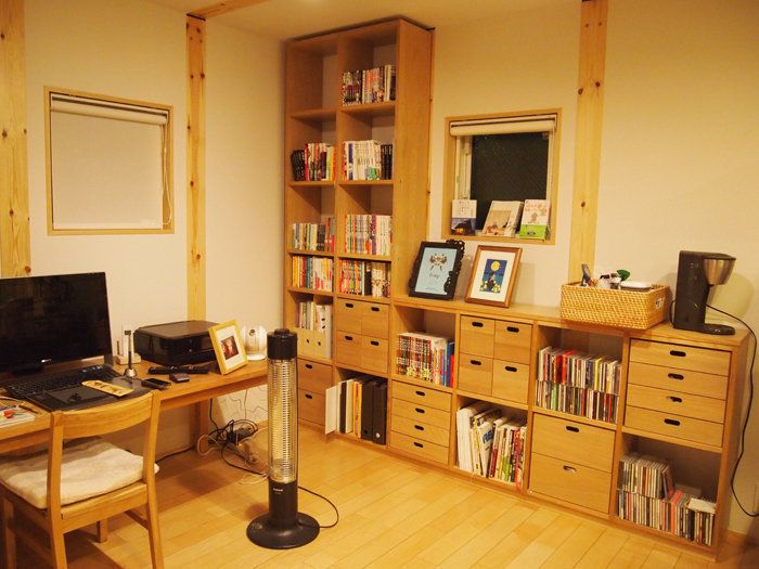 無印良品の定番商品「スタッキングシェルフ」は、名前のとおりスタッキング=重ねることができて、その可能性は横にも縦にも無限に広がっていきます!付属パーツも充実。大きな本棚をつくりたい夢のあるかたにはもってこいの商品です。藤田さん宅では、「窓があるけれど天井まで届く大きな本棚をつくりたい!」という願いを叶えるために活用したそうですよ。