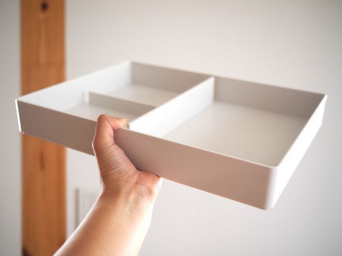 「無印良品のABS樹脂 A4仕分けトレー」は、中に仕切りがついていることから、掃除がはかどること間違いなし。さらにこのABSシリーズ、同シリーズのトレーと組み合わせて使うこともできる優れもの。高さがないので、ごちゃごちゃしがちな引き出しなどに入れて整理するのにピッタリです。