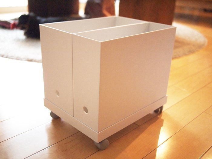 洗面所の下、テレビの横、上手く使いたいのに使えないスペースばかり…そんな悩みを見事にカバーしてくれるのが「キャスターもつけられるフタ」。基本的にはファイルボックスなどのフタとして活用できるのですが、フタの上にファイルボックスを置くことも可能。つまり…そこにキャスターをつければ、前後左右に自由自在に動く、キャビネットのような動きが可能なんです!