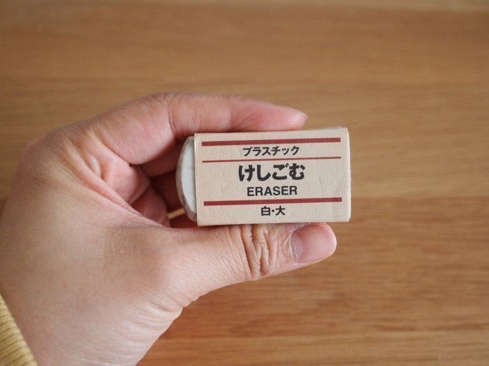 「柔らかすぎず、固すぎずなのでこちらも漫画を描くときによく使っていますよ」と、藤田さんが話すのが「プラスチックけしごむ白・大」。ケースのデザインが無印らしくてとてもかわいいです。力を入れなくてもスッと消えてくれるところも魅力。