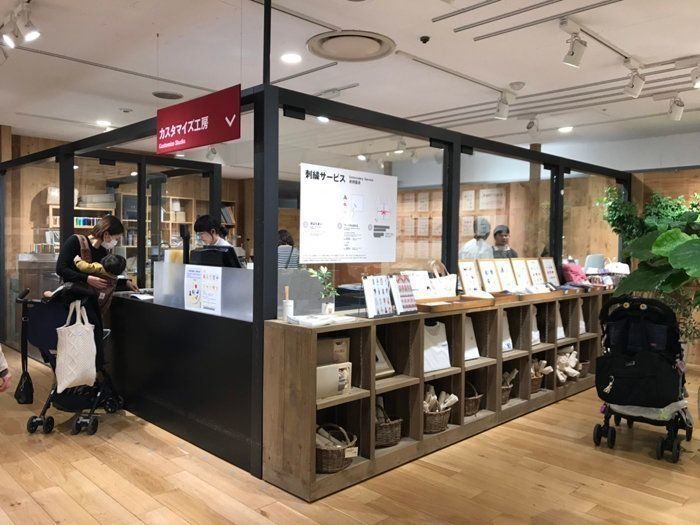 無印良品にはデザイン工房というサービスがあり、自分の気に入った商品にプリントをしてくれる「プリント工房」や、オリジナルもしくは既成のテンプレートから刺繍をしてくれる「刺繍工房」など、オリジナル商品をつくるのにもってこい!なサービスをしてくれる店舗が存在します。