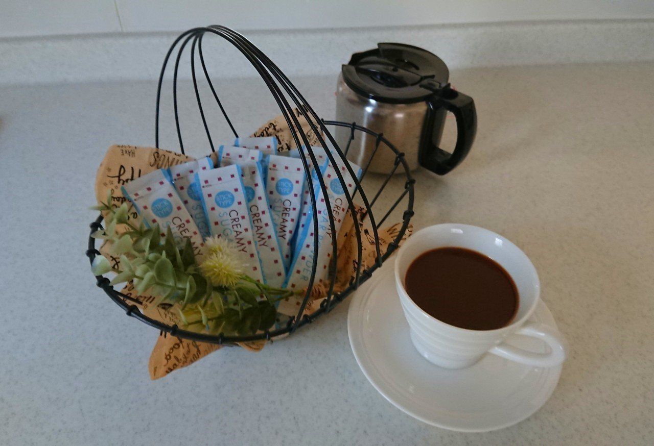 ガムシロップやポーションミルクはついつい余らせてしまいますが、「クリーミー シュガーパウダー」なら通年使えますし、スティックタイプは使いきりの量で、突然の来客にもGood!小分け包装のため、湿気など気にせず、保存も楽チンです。