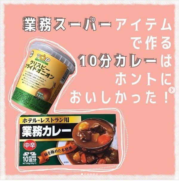 業スーのクリスピーフライドオニオンとカレールー、ツナ缶であっという間にコクのある絶品カレーができちゃいます!煮込む手間もないので、いそがしい女性にぴったりです。