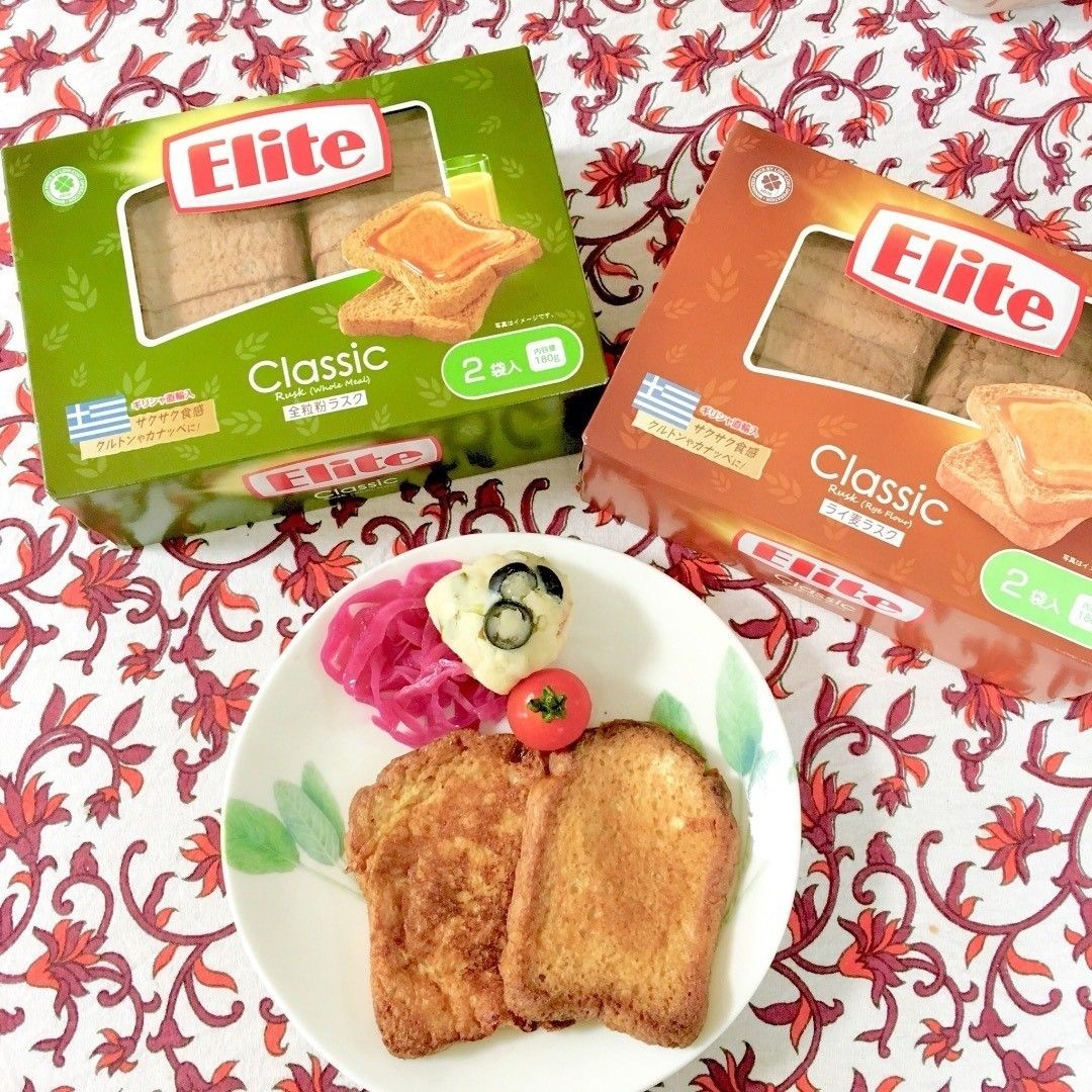 とだかまやさんは、ライ麦と全粒粉のラスクを購入しました。1箱22枚も入って約100円とお手頃価格♪そのまま食べてもおいしいですが、卵液に浸してフレンチトーストにするのが、とだかさんのおすすめ。甘くなくカリカリとした食感のラスクなので、クルトンやカナッペにも使えそうな万能商品です。