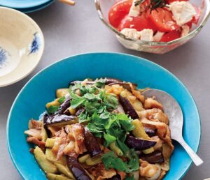 用意するものは、チャプチェ1人前の材料と、お好きな夏野菜数種類!今回は、トマトとズッキーニを準備しました。トマトはざっくりと乱切りにし、ズッキーニは千切りにしておきます。通常通りにチャプチェを作り、たれを混ぜる前に、トマトとズッキーニを加えて一緒に炒めます。最後に、塩コショウを加えて、味の調整をしましょう。