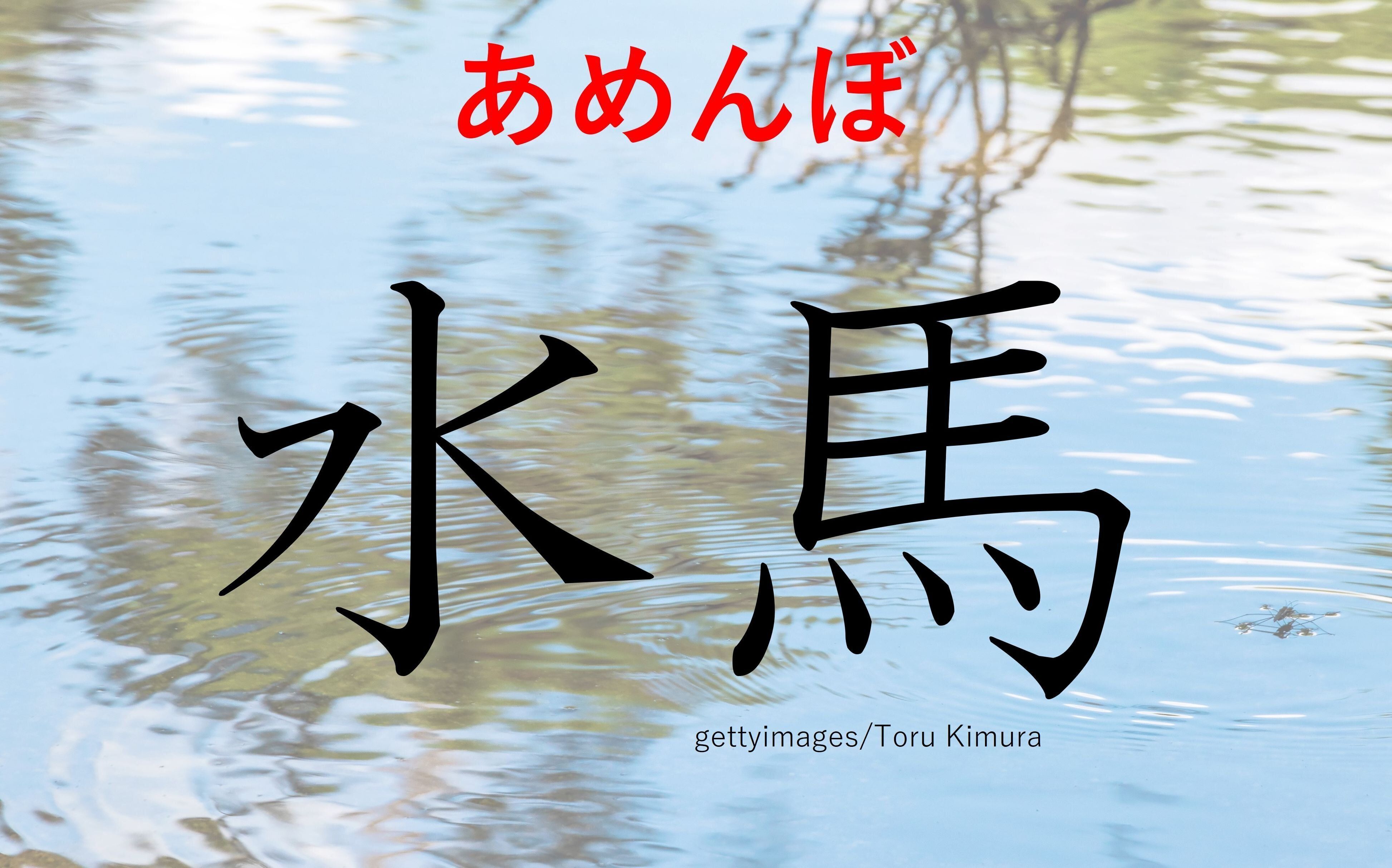 「水」と「馬」で「水馬」。すなおに読めば「すいば」ですね。実際、この読み方も可能。江戸時代、隅田川でおこなわれた馬で水の中をわたる行事のことをさすそうです。もちろん「すいば」以外の読み方もあるわけです。