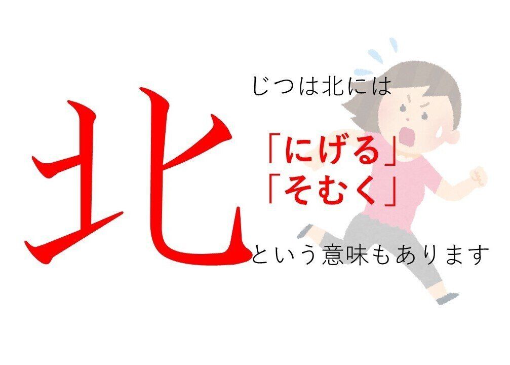 じつは「北」には「にげる」「そむく」という意味もあり、元々はそちらの意味で使われていたんです。だから「敗北」は「争いに負けて逃げる」ことを意味するわけです。