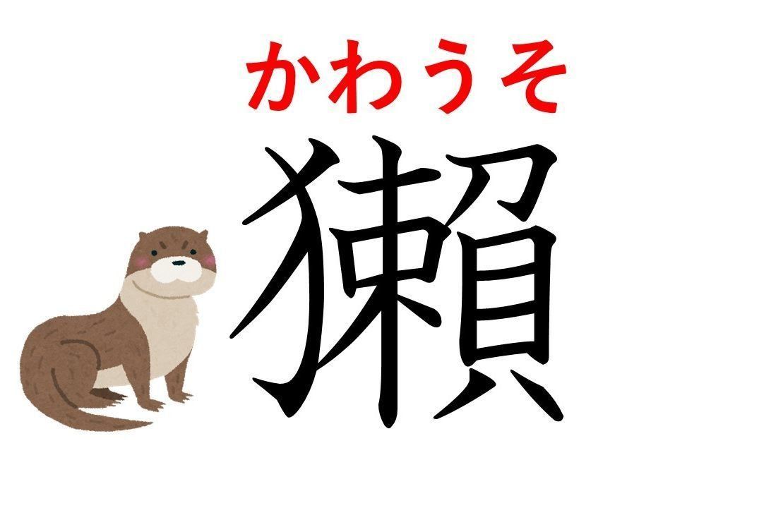 難度でいうと、漢検では1級レベル。ややこしいのは、「川獺」と書いても「かわうそ」と読むこと。さらに、「獺」の字には「おそ(カワウソの別称)」「たつ」「だつ」などのいろいろな読み方もあって、漢検受験者泣かせの漢字なのです。