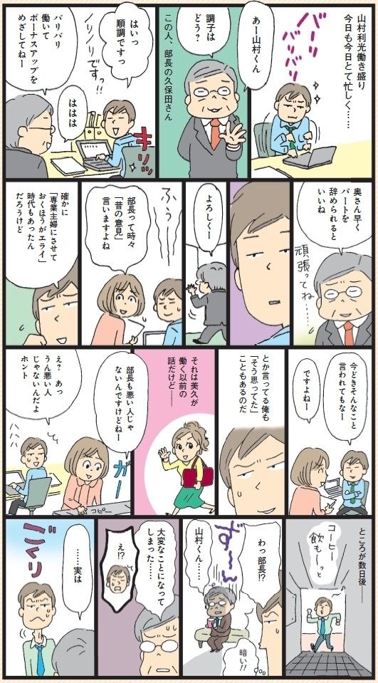 出産後、専業主婦をしていた美久は、再就職しコールセンターのオペレーターに。オペレーターの仕事に不満はなかったが、「やはり正社員になりたい」と一念発起して、転職活動をした。薬局の事務の正社員に応募するも不合格。しかし、「パートなら採用できる。パートから正社員になる道もある」と聞いて系列のドラッグストアで販売のパートに。仕事も家庭もバタバタの毎日を送っている