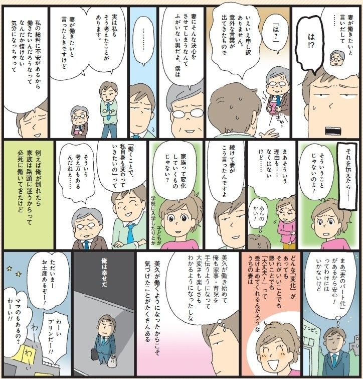 今のご時世、「夫がきちんと勤めているから安心」とはいえないですよね。倒産まではいかなくても、夫がリストラに遭ったり、体調をくずして休職したりすることもあるかもしれません。妻が多少なりとも働いていれば、リスクヘッジになります。利光さんが言うように、危機があっても2人で乗り切っていける「心のリスクヘッジ」にもなるといえるでしょう。