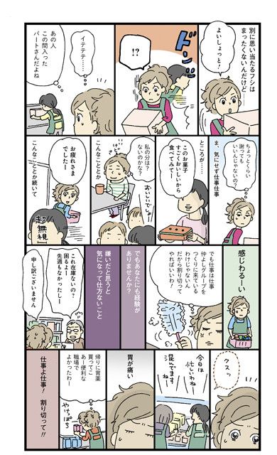 出産後、専業主婦をしていた美久は、再就職しコールセンターのオペレーターに。オペレーターの仕事に不満はなかったが、「やはり正社員になりたい」と一念発起して、転職活動をした。薬局の事務の正社員に応募するも不合格。しかし、「パートなら採用できる。パートから正社員になる道もある」と聞いて系列のドラッグストアで販売のパートに。仕事も家庭もバタバタの毎日を送っている