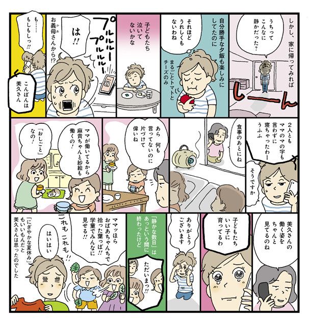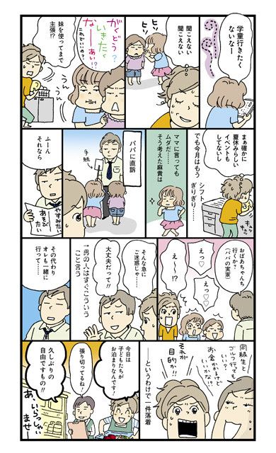 長期の休みには、子どもを実家に預かってもらうのも働きママンの夏休み対策の定番です。自分と夫の実家に1週間ずつ……というファミリーも。子どもだけで実家に滞在するのも新鮮な体験です。初めは美久さんのように心配かもしれませんが、意外に、子どもは寂しがらないもの。「かわいい子には旅をさせよ」を試してみるのもいいかもしれません。