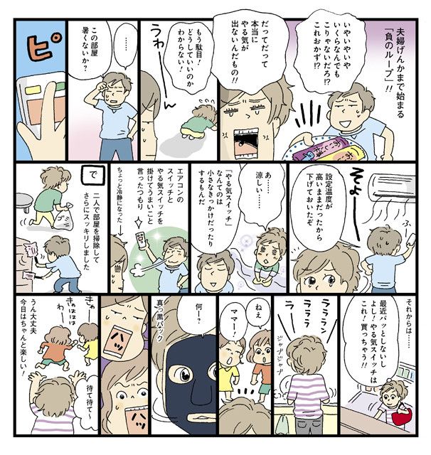 疲れているときに「あれをやらなきゃ」と思ったら、「それは本当に今やらないと駄目なもの?」と考えてみては。疲れているから、冷静に考える余裕がないだけかもしれません。夕食の支度だって、疲れているならべんとうや総菜を買って帰ればいいだけ。パートナーやお子さんに「疲れた」と家事を頼んでもいいと思います。黙ってイライラされるより、事情がわかったほうが家族も安心するのではないでしょうか。