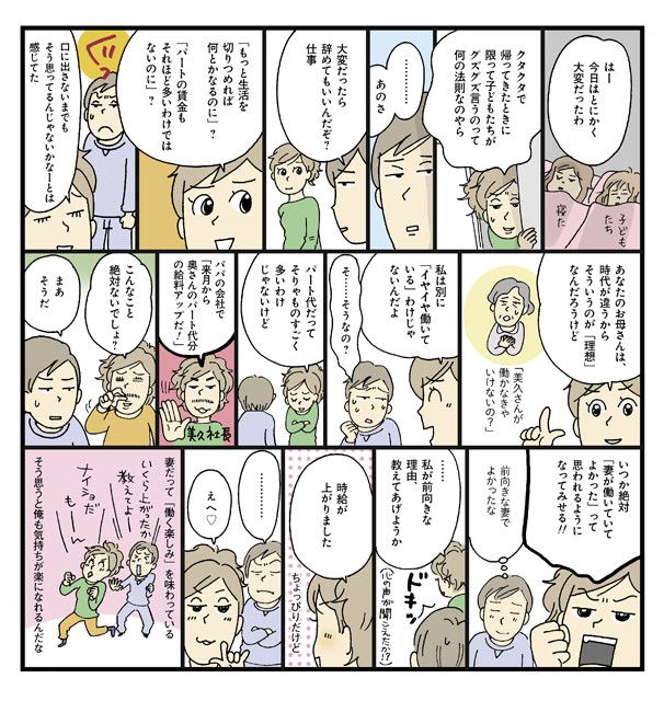 今や「『女性の社会進出』は、社会全体で進めていくべきこと」という認識は当たり前ですよね。とはいえ、それが自分の家庭のこととなるとピンとこない男性がいるのも事実です。特に実家の母親が専業主婦だった場合、妻が働くことが「普通」ではないことに思えて、「妻を働かせている」「妻を働かせてやっている」というような発言につながるのかもしれません。
