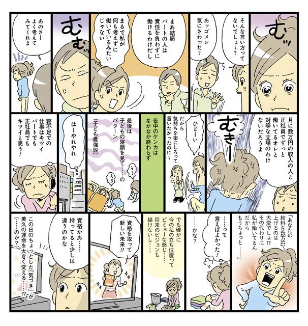 夫がパート・アルバイトの妻の仕事を軽く見るような発言をすることはよくあること。「数万円の給料だから、大した仕事ではない」などと言われることもあるかもしれません。とはいえ、夫の給料をその「数万円」上げられるかというとむずかしいはず。そのあたりを夫に伝えてもいいのでは?