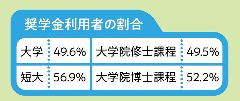 現在は学生の2人に1人が奨学金を利用。奨学金には原則、返さなくていい給付型と返す必要がある貸与型の2種類があります。また、住民税非課税世帯などを対象に、給付型の奨学金の対象者が申請できる授業料や入学金を減額・免除する「授業料等減免制度」も。こうした制度は学校が独自に設けている場合もあるので、志望校のホームページを確認して。