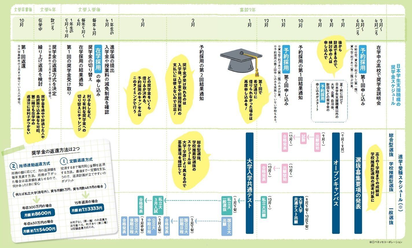 ※(C)ベネッセコーポレーション※紹介している進学・受験スケジュールは目安であり、大学や学部により大きく異なります。詳細は各大学が発表する募集要項などをご確認ください。