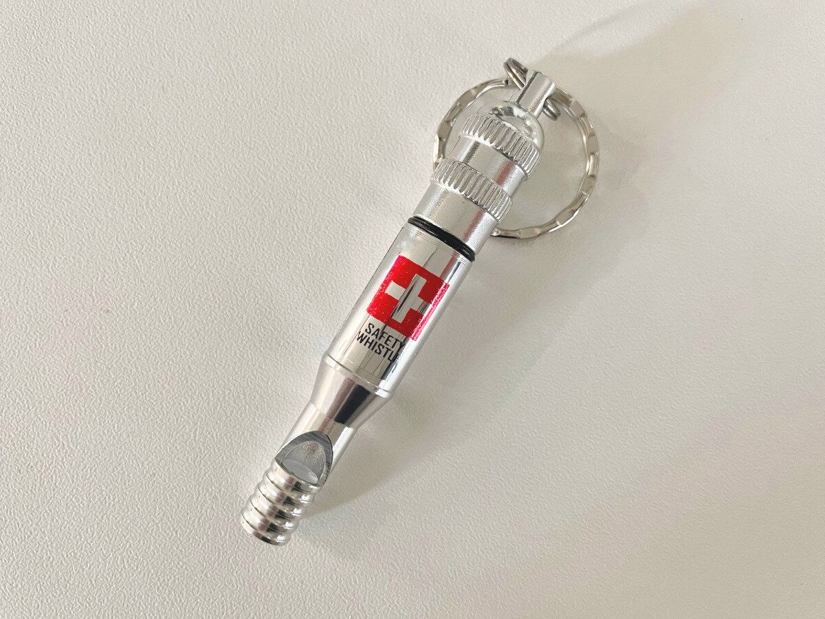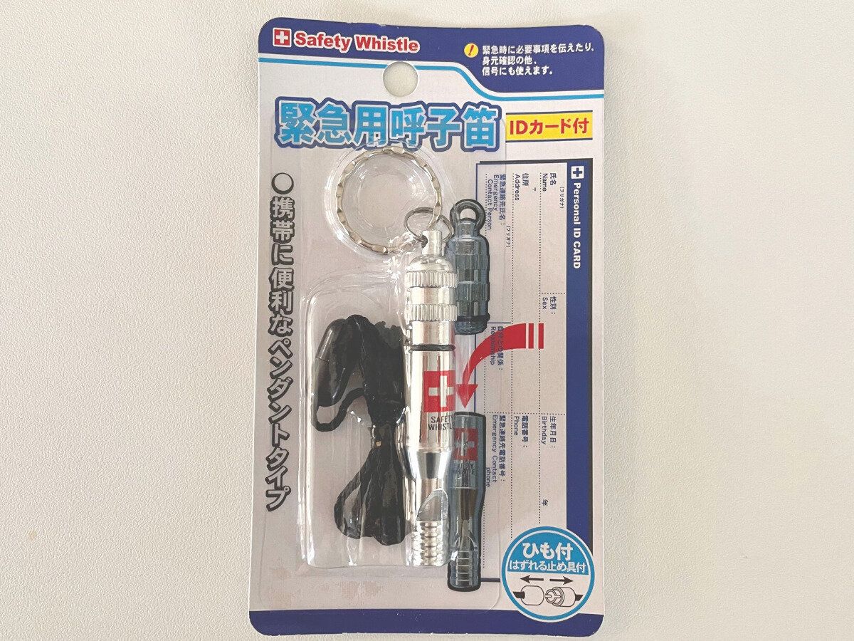 防災リュックや備蓄の準備はしていますが、外出先で起きたときのことを考えて、「ホイッスル」を追加しました。