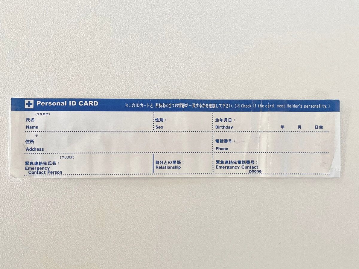 付属のIDカードがついていますが、漢字で書いてあり子どもは読めないので、自作のメモをいれています。