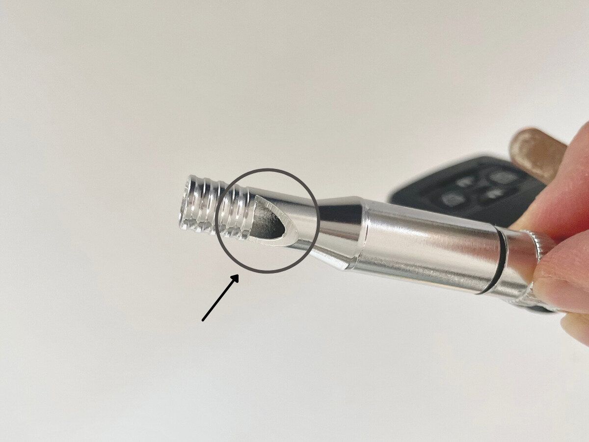 鍵につけても携帯しやすい、細長くコンパクトなタイプです。