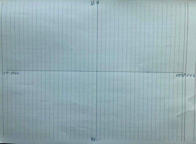 5.書いた付箋を、所要時間と難易度に予測をつけながらマトリックス表に貼る