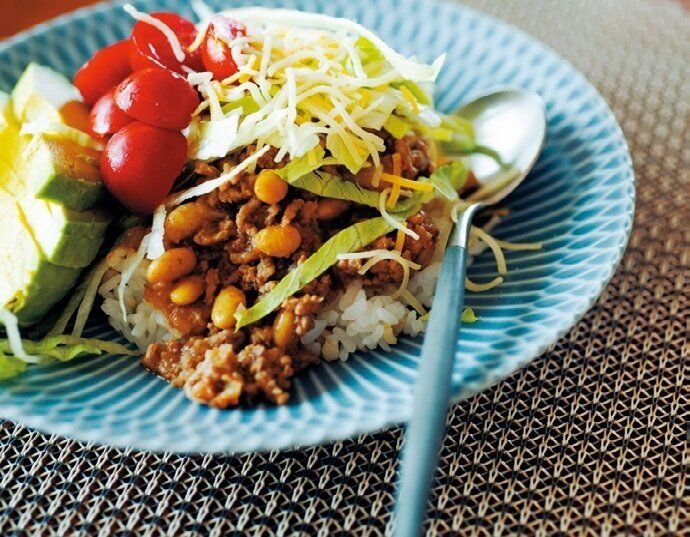 「”〇〇の素”が多いカルディコーヒーファームは、救いの神。今日はタコスの素に大豆の水煮を足して栄養も満点(ドヤッ)」。