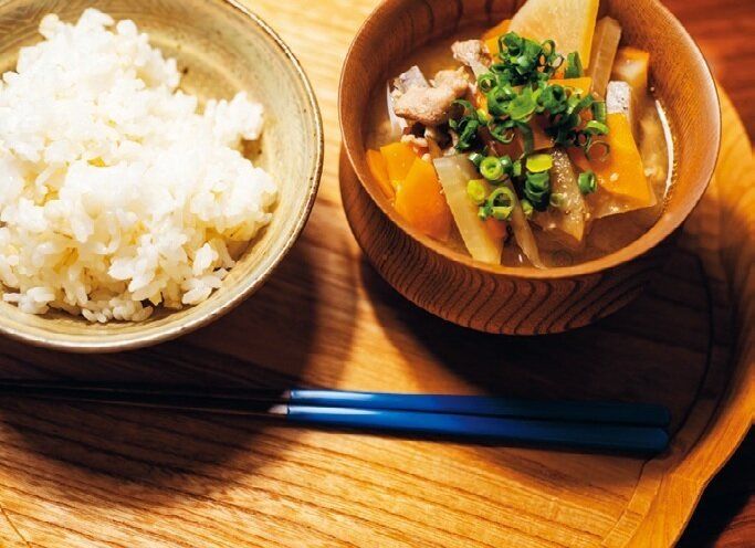【18:30】疲れた日は”豚汁”と”白米”のみ具だくさんで最強なのです