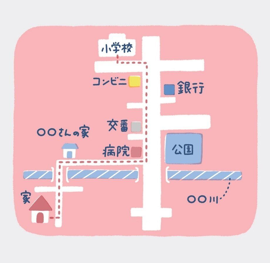 交番や、「こども110ばんのいえ」、コンビニ、その他店舗などの場所を親子で確認しておき、助けてほしいときにいちばん近くにある場所にすぐ逃げ込めるように覚えさせる。