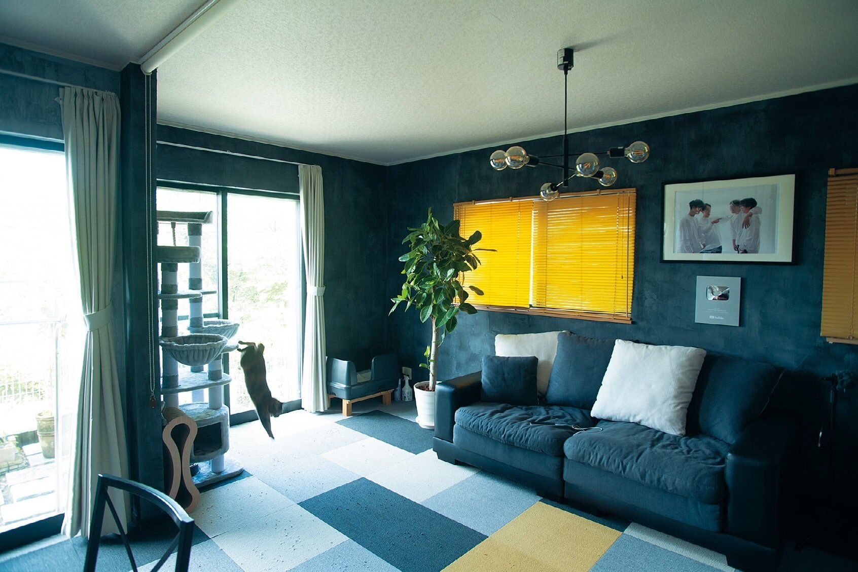 10年前に築5年の中古物件を購入。「コストをかけずに自力で壁を塗り替えました。ソファの色に合わせたらいい感じに」。