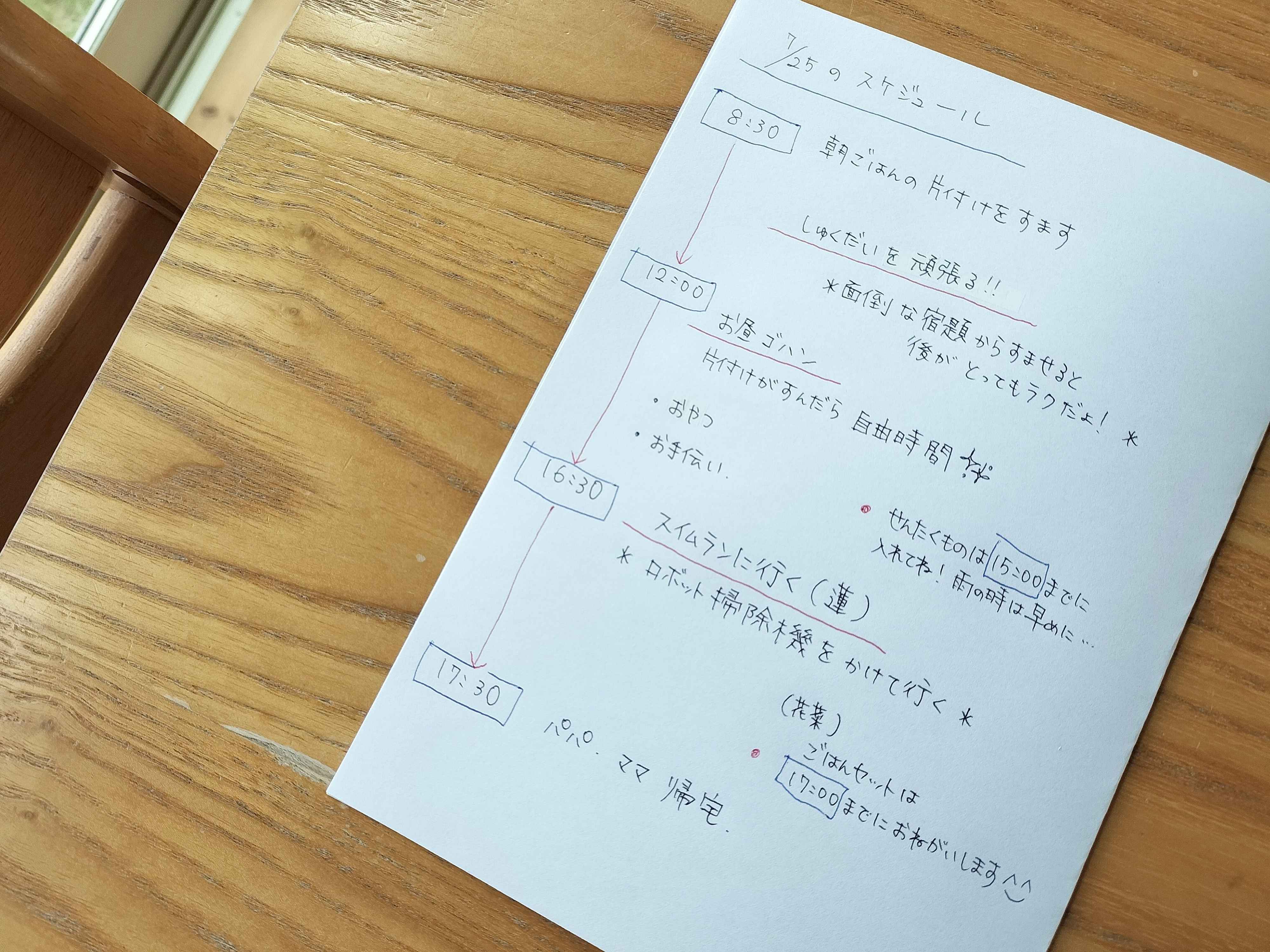 簡単な『スケジュール表』をつくり、置いていく