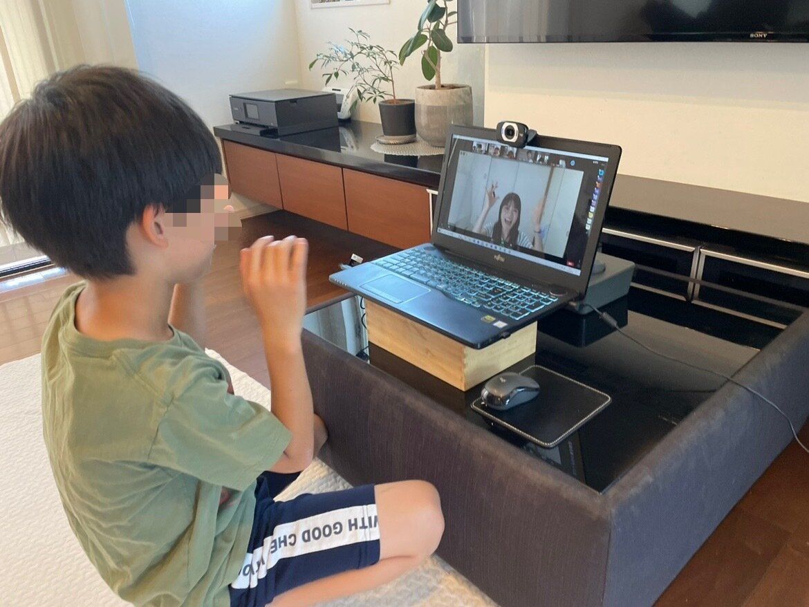 まだ慣れない初めの頃は、行くまで「いやだ」と言っている子もいるんじゃないでしょうか?自宅での参加では、もしやりたくなかったとしても、実際にZoomをつないで参加すると、画面の向こうから先生が優しく話しかけてくれるので、だんだん緊張もほぐれていきました。