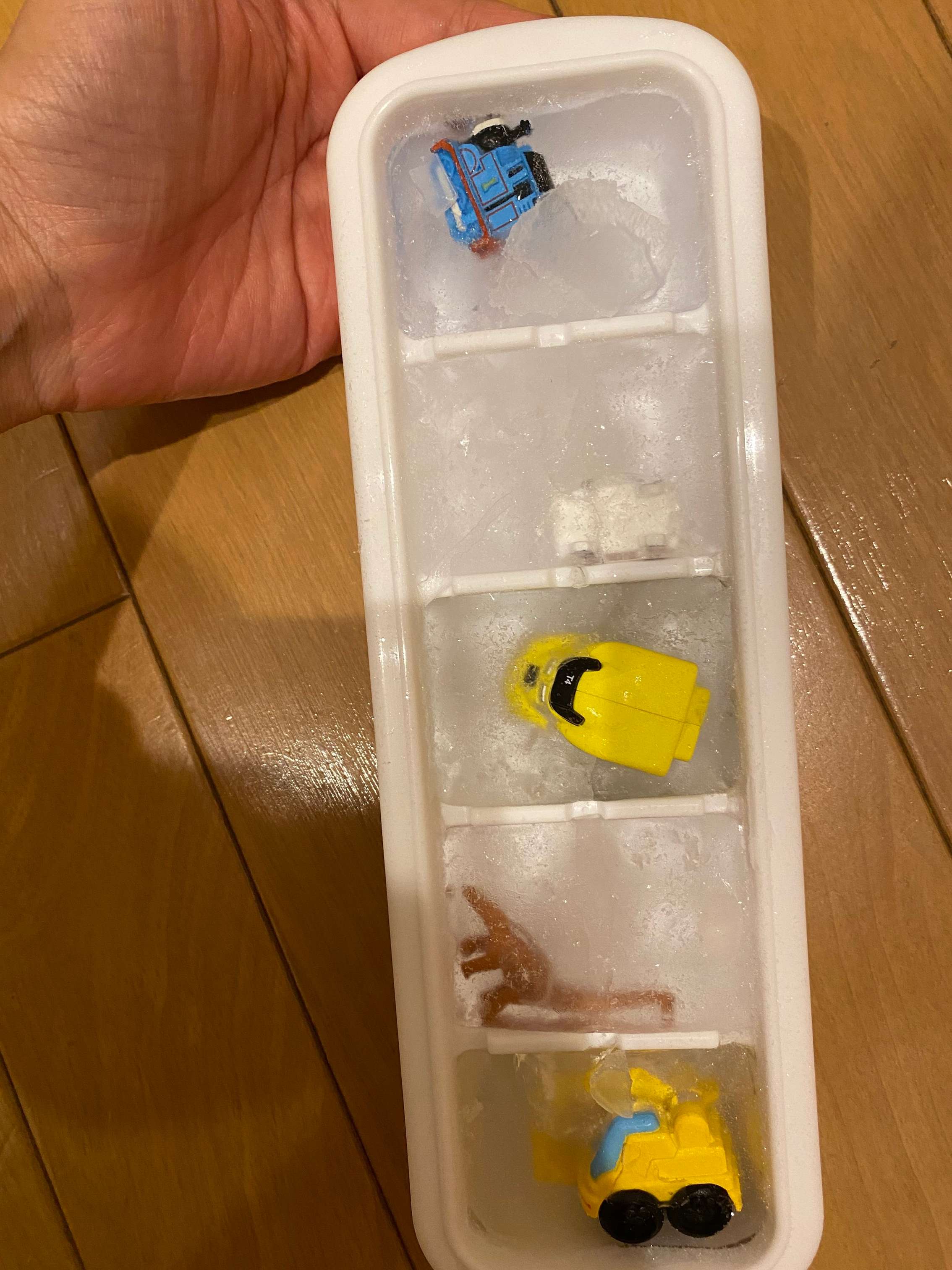 これらを製氷機に小さいおもちゃを入れて、凍らせるだけです。