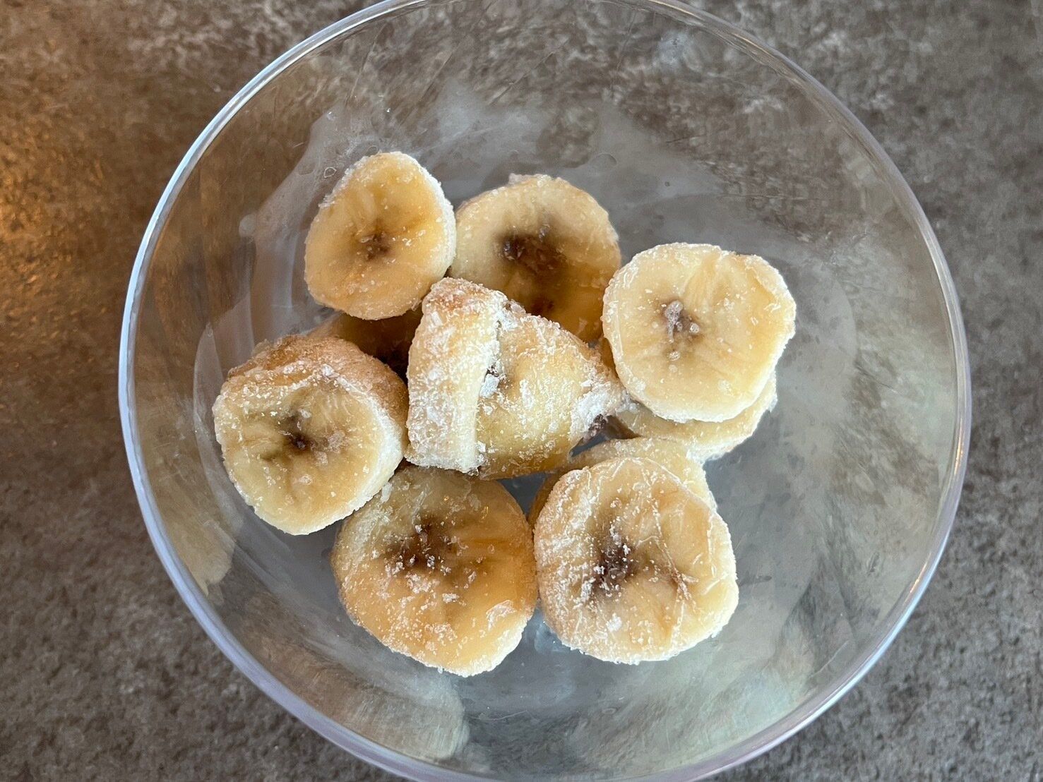 わが家では、バナナが黒くなってしまう前にひとくちサイズにカットして冷凍しています。
