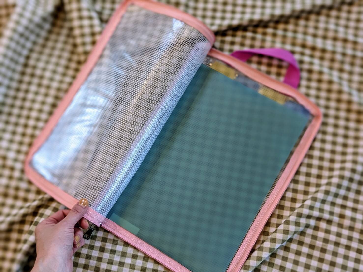 まるで本のようにガバッと開くので、仕切りをパラパラとめくって収納することができます。まだ器用に支度ができない低学年には、うれしい仕様ですね。